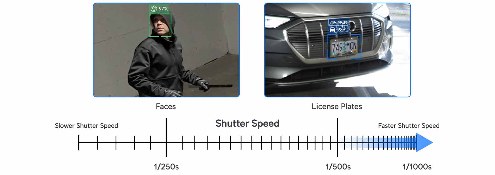 Exista doua mecanisme principale prin care un sistem de supraveghere bine proiectat poate compensa lipsa de lumina si poate mentine viteze mari ale obturatorului: