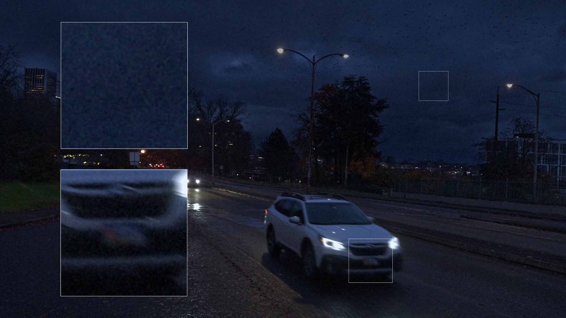 Cand numarul de fotoni disponibili scade sub pragul necesar, imaginea se degradeaza: zgomot vizual, pierderea detaliilor fine si scaderea increderii in detectia AI.