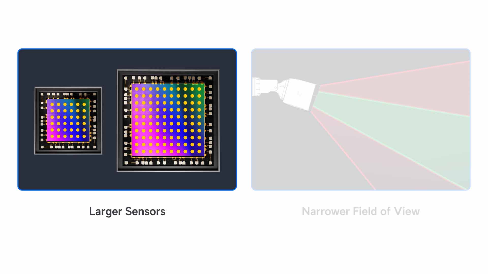 Doi factori cheie pentru a extinde performanta la lumina scazuta: senzor mai mare si unghi de vedere mai ingust.