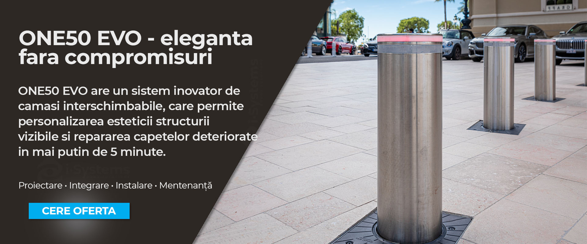 Unitatea hidraulica este integrata in corpul bolardului, fara furtunuri externe. Accesul rapid permite interventii de mentenanta fara echipamente grele. I-Systems ofera: