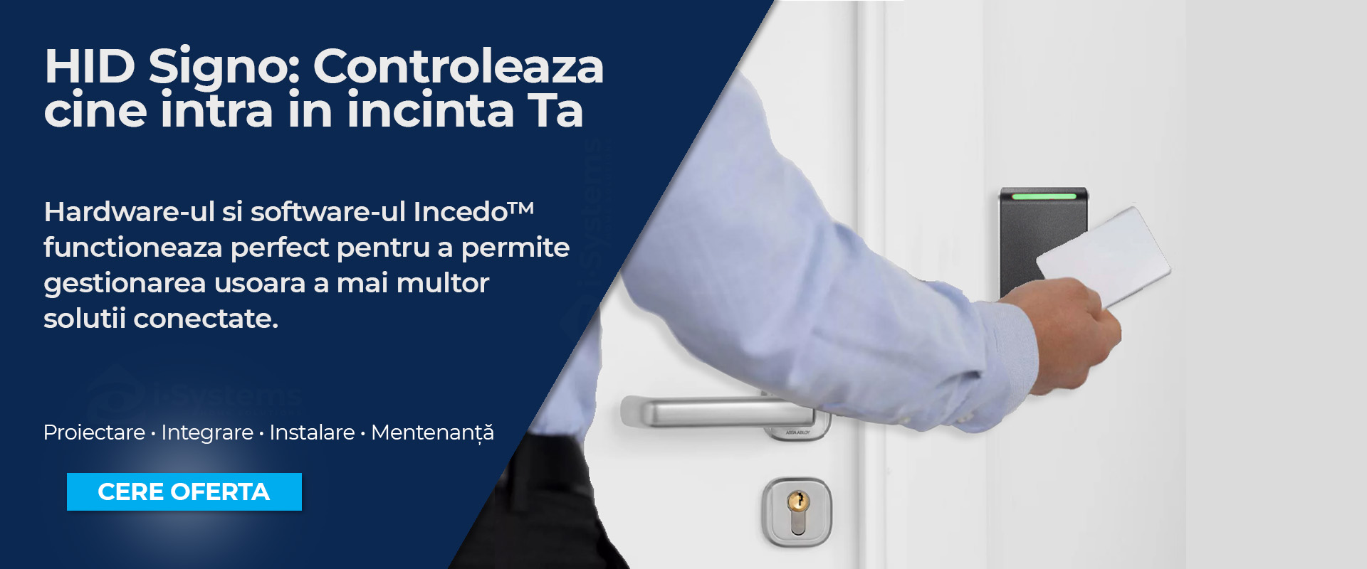 In mod tipic: controler de acces, sursa/UPS, yala/electromagnet, buton de iesire, contact magnetic, cablare, software (daca e cazul) si configurare. I-Systems iti poate livra pachetul complet: proiectare + instalare + mentenanta.