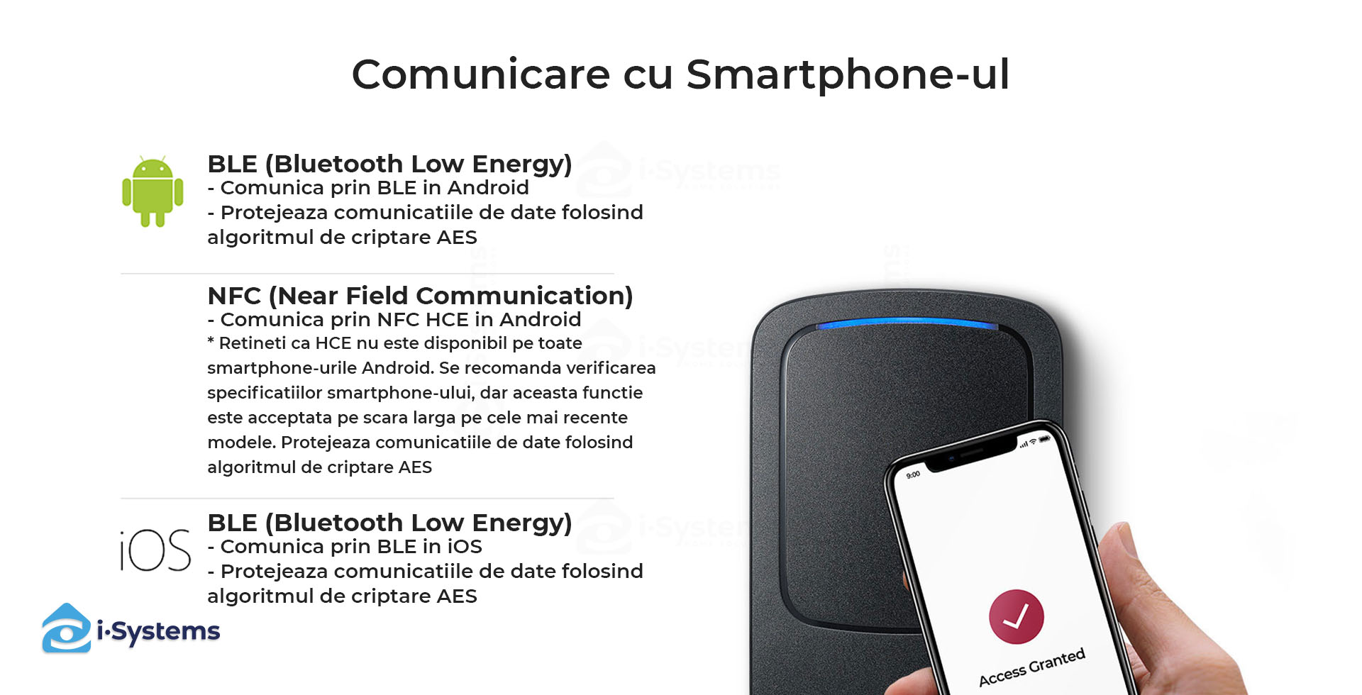 | Acces Mobil | Suport nativ NFC si Bluetooth (BLE) via Suprema Mobile Access |