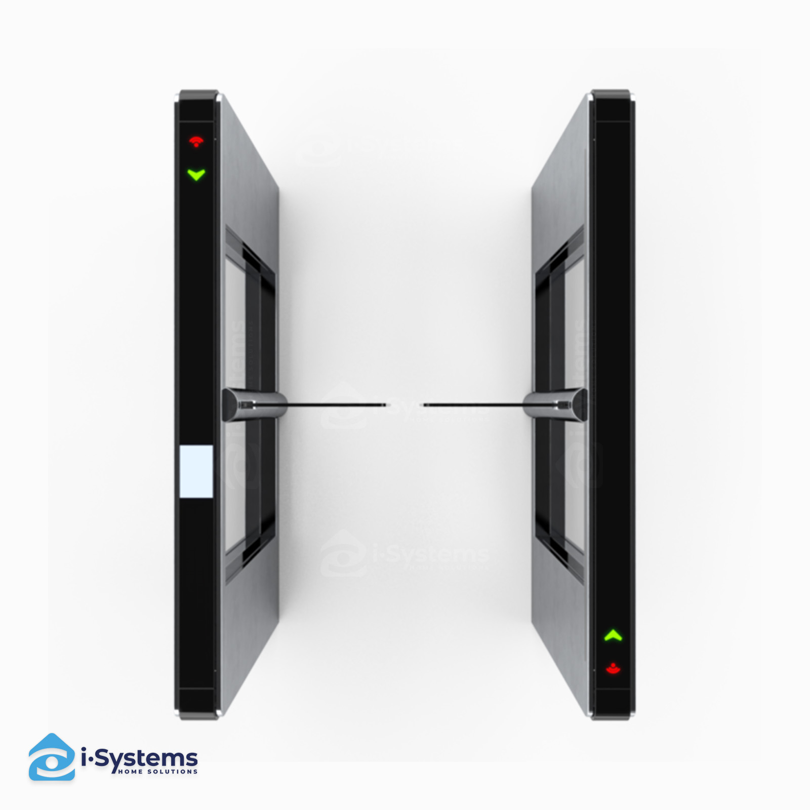 Sistemul poate fi configurat cu latimi de pasaj de 650 mm, 915 mm sau variante custom, iar inaltimea aripilor din sticla poate fi de 960 mm, 1200 mm sau 1800 mm, in functie de nivelul de securitate dorit.