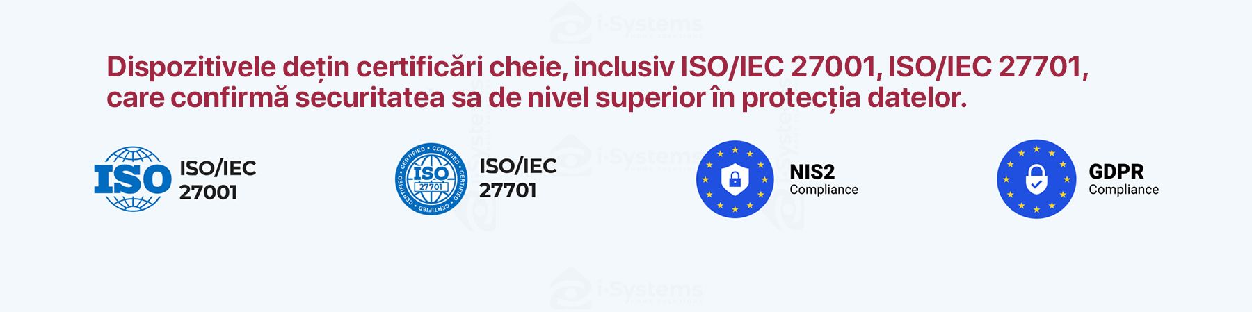 Terminalul incorporeaza criptare biometrica avansata, boot securizat si management certificat GDPR. Datele faciale sunt procesate local, eliminand riscul de transmitere catre servere externe.