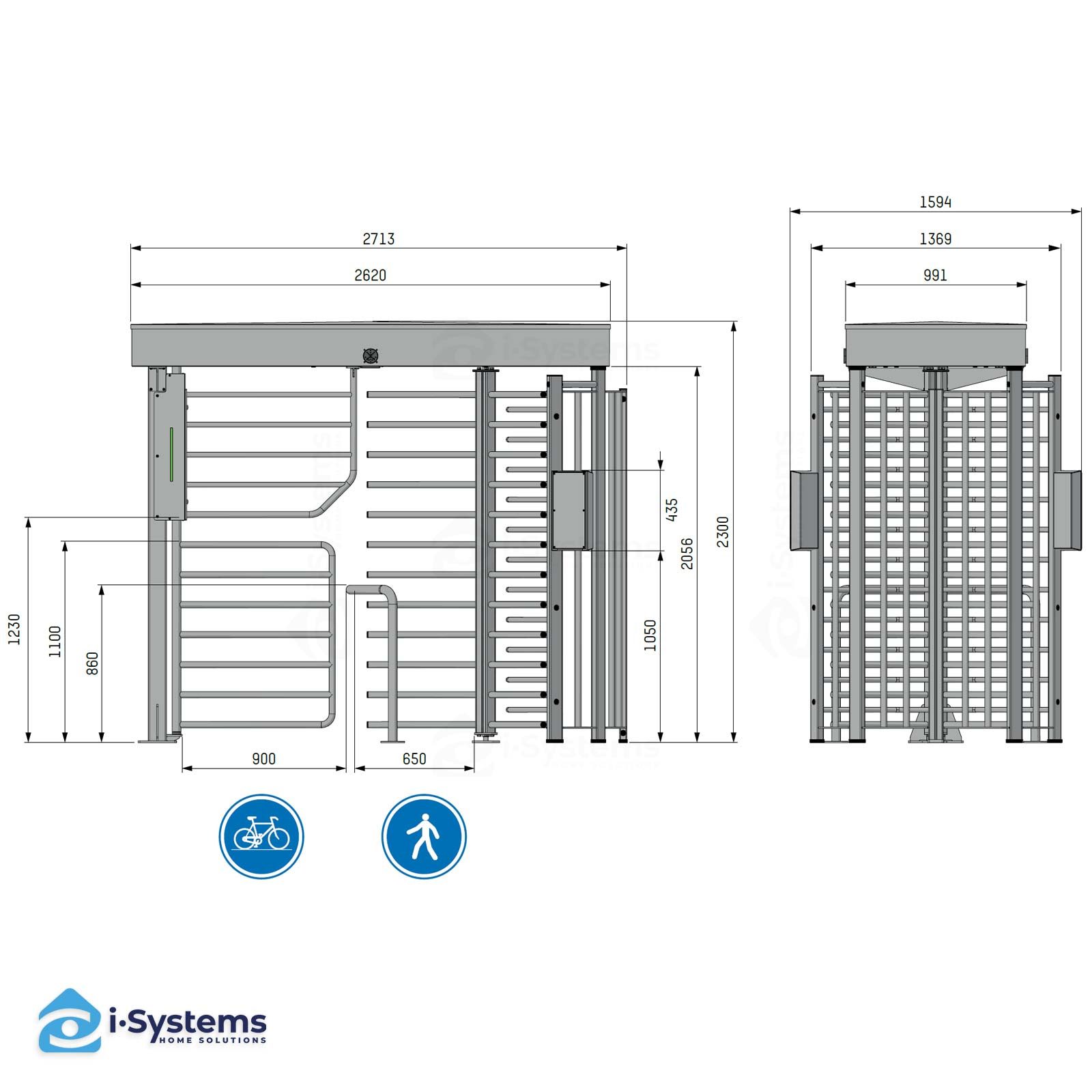 Controleaza eficient accesul pietonal si al bicicletelor cu turnichetul combinat TRS BIKE de la Automatic Systems, format din TRS 370 (3 brate la 120°) si poarta bidirectionala pentru biciclete, proiectat pentru securitate ridicata si trafic intens. Cu structura robusta pentru exterior, mecanism cu blocare mecanica si amortizor hidraulic pe partea pietonala, motor brushless 24 V pe poarta bici, MCBF 500.000 cicluri si protectie IP43 (−10…+50°C), TRS BIKE asigura fluxuri separate, sigure si rapide (15–20 treceri/min pietoni, ~5 treceri/min biciclete). Usor de integrat cu sisteme de control acces (Modbus, web interface/XML-RPC), suporta moduri free/locked/pe autorizare cu optiuni fail-safe/fail-lock si accesorii precum pictograme LED, copertina, inox sau incalzire pana la −35°C.